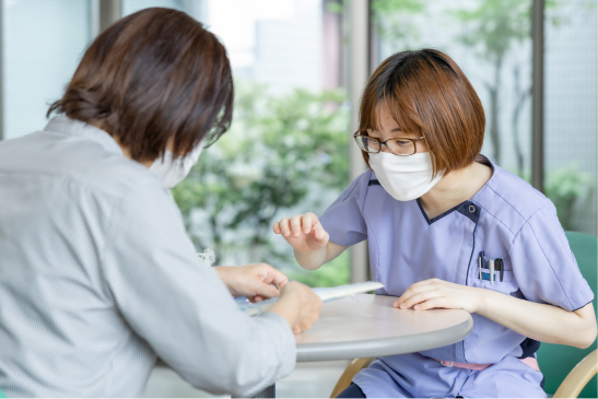 医療費などの経済的なこと、入院中の自宅の様子、職場復帰など、心配事や不安について、活用できるサービス・制度などを紹介し、入院生活に専念しながら、退院に向けてのステップアップを支援いたします。