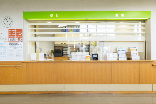 健康保険証等をご提示ください。番号札をお渡しいたします。